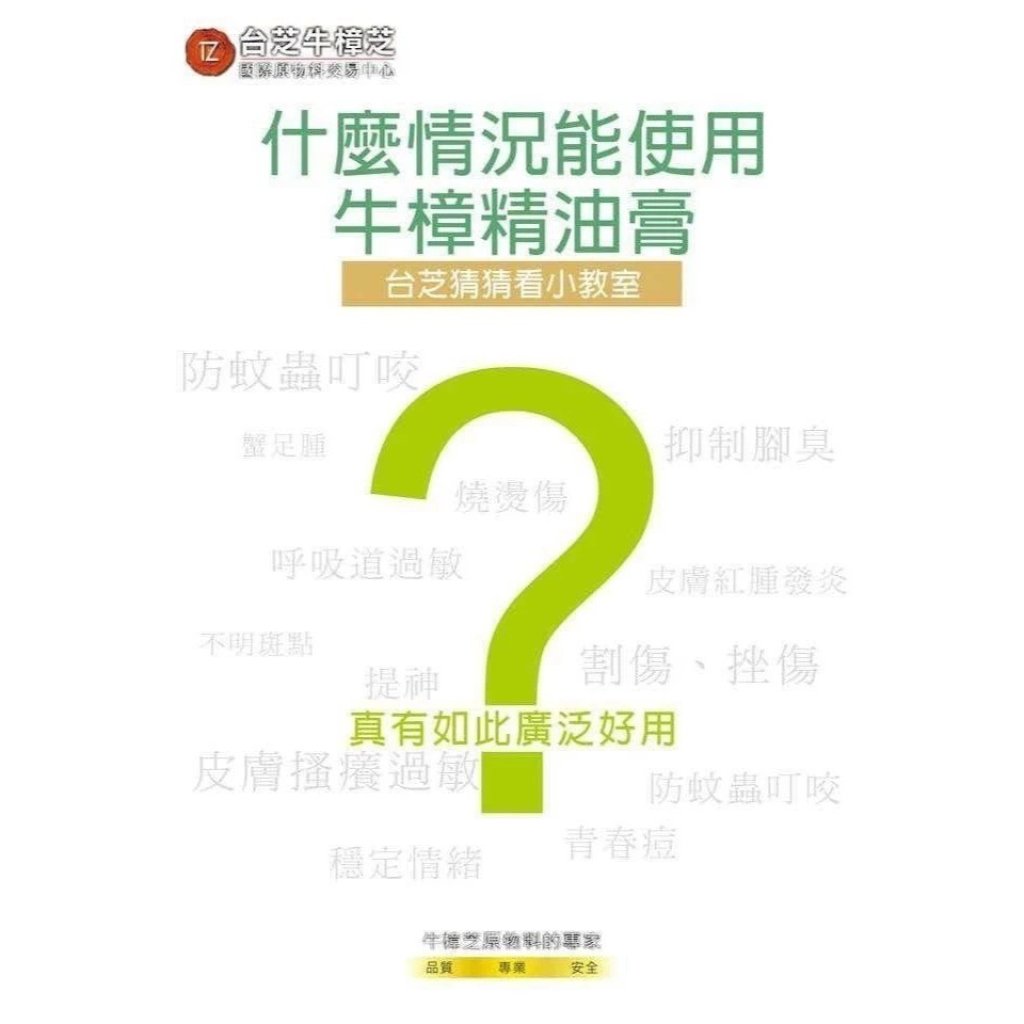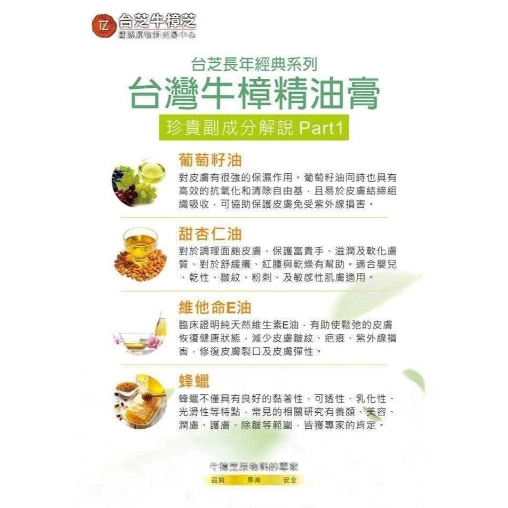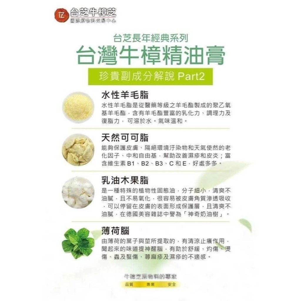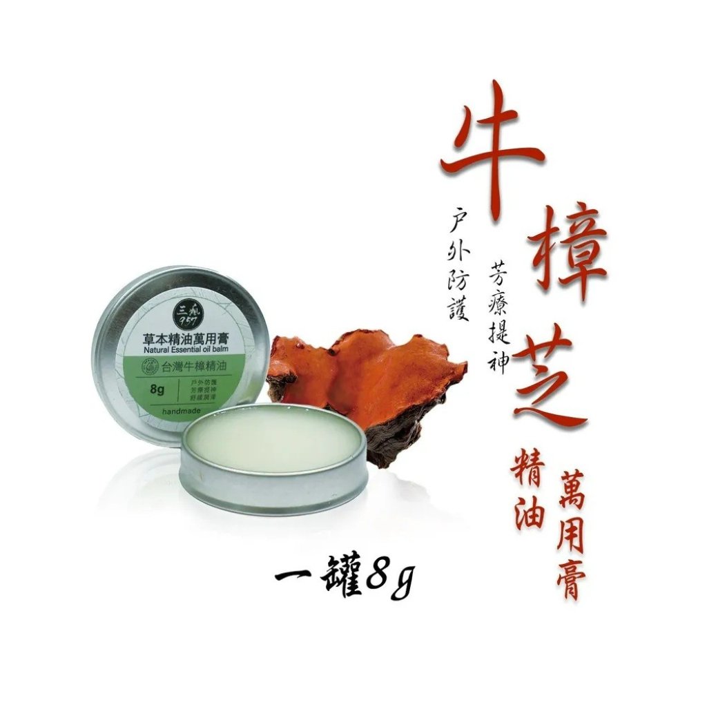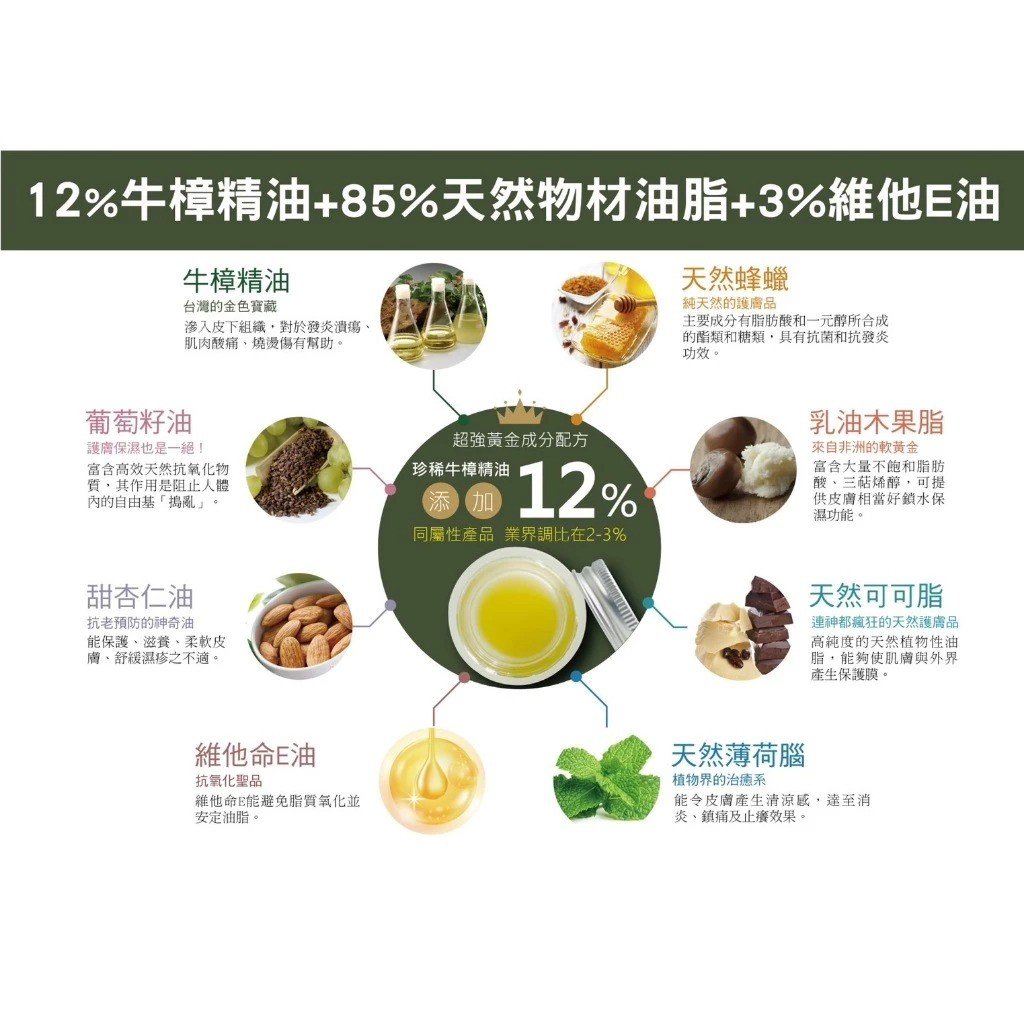 主要成分:頂級牛樟芝 + 純精油 + 添加葡萄籽油、甜杏仁油、荷荷芭油、維他命E油、蜂蠟、水性羊毛脂、天然可可脂、乳油木果脂、薄荷脂